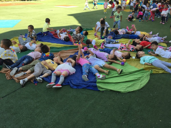 爱玩是孩子的天性,以游戏为主的幼儿园生活才是孩子的乐园,孩子的天堂。今天我们就带领孩子们来到操场玩起了彩虹伞。