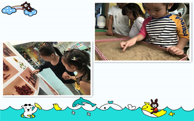 原来是大班的哥哥姐姐来到了小二班,他们给弟弟妹妹们带来了很多好玩的玩具和自制的小礼物。一进门,哥哥姐姐就热情的和弟弟妹妹们打招呼:“弟弟妹妹们好!”“哥哥姐姐们好!”小二班的孩子也挥着小手热情的回应着。哥哥姐姐可真能干!看!他们有的在给哭泣的妹妹擦着眼泪;有的帮助不会穿鞋的小男生穿鞋;有的在给妹妹喂饭;还有的开心的抱着弟弟妹妹,正说着悄悄话……准备工作都整理好了,“逛逛我的幼儿园”活动开始啦!“走!我们带你们看看我们的幼儿园吧!幼儿园里好玩的东西可多啦!”大手牵着小手,一边走一边看“这是我们的建构区,里面有很多好玩的积木。这是我们的创意室,可以玩颜料还可以做手工的。”“这是我们的沙画室,可以用手在沙上面作画,可好玩了。”有的孩子都忍不住动起了小手。这儿是我们的图书区,里面有很多好看的书。这不,有的哥哥姐姐还给弟弟妹妹们讲着故事,别提多开心啦!