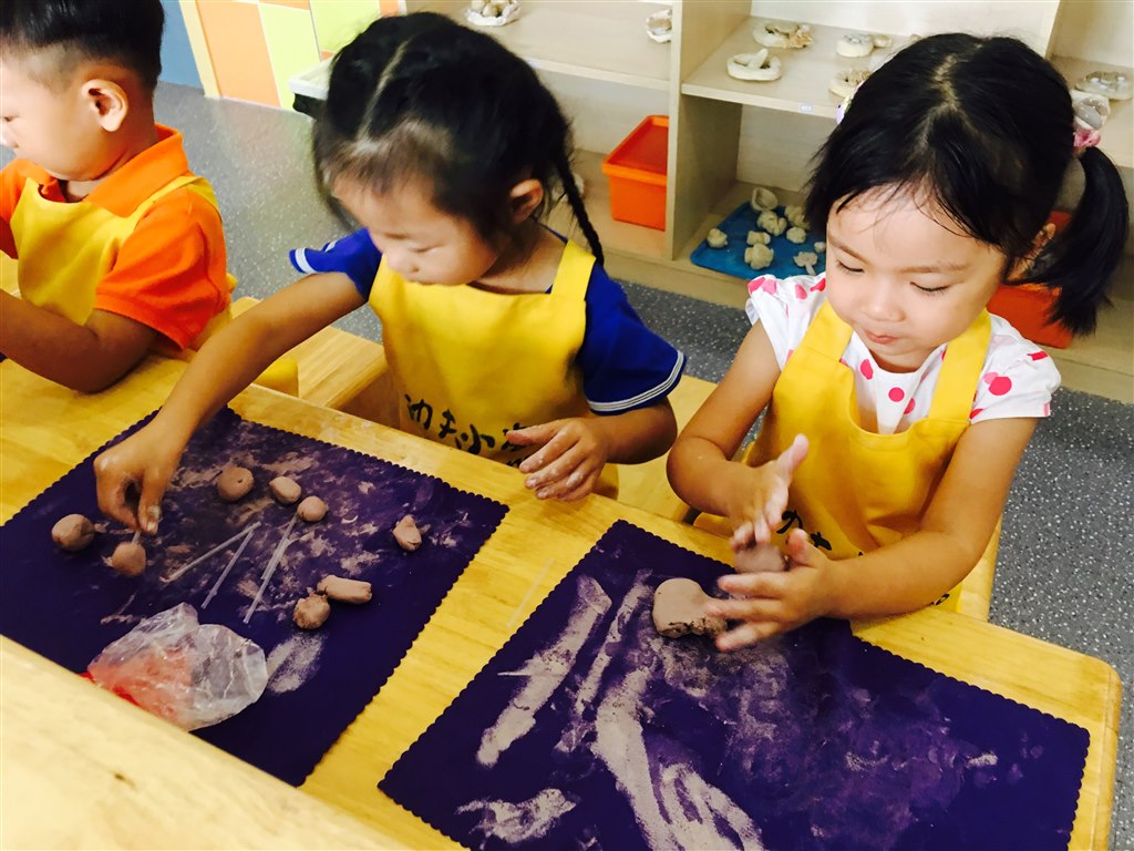 今天新生班的小朋友们也来到陶艺教室,这一次我们小朋友要学习用“搓圆”and“穿”的技能,做出属于自己的“棒棒糖”。