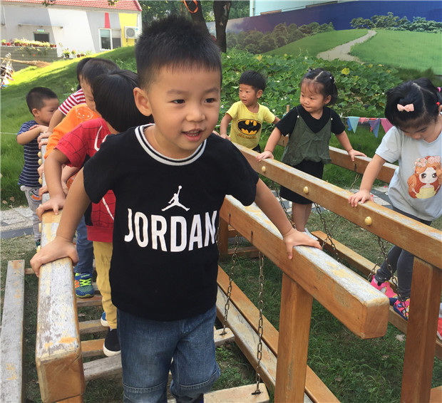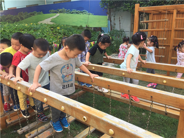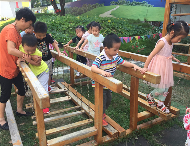 今天上午,我们一起开火车到操场上,尝试玩一玩大型木质器械独木桥和铁索桥,虽然个别宝宝比较胆小,很害怕,不敢独自前行,但是在老师和保育员的帮助下,也能走完整个铁索桥,真的很棒!