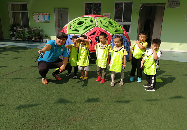 如何把足球带入到幼儿园成了我们首先得难题。从9月下旬开始,我们准备了一系列专门为幼儿量身定制的足球课程。 一个个滚动的足球,一张张稚嫩的面孔,一颗颗快乐的心灵,孩子们在绿茵草地上奔跑让人向往不已。这套幼儿特色足球课程不以纯粹培养足球技能为重点,而是通过足球为载体,分享快乐,陪伴成长。