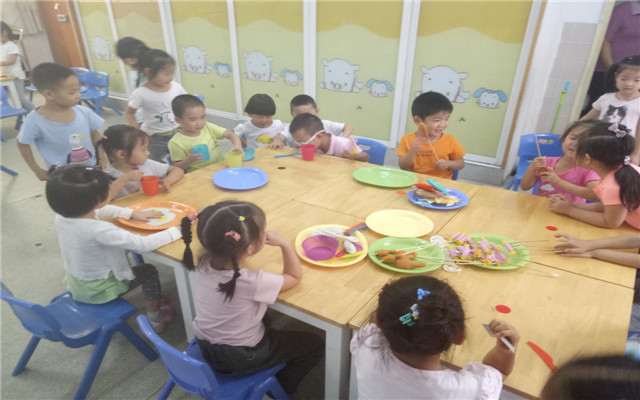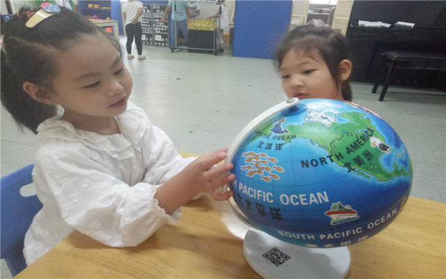 每天幼儿一节集体教学活动后就会进入区域玩耍。在区域活动中,我们给幼儿提供充分的操作、尝试、体验、交往和表现的机会,投放不同层次的活动材料,及时更换和补充操作材料,使孩子时时有新的感觉。孩子们在宽松的环境中,根据自己的喜好、兴趣选择活动动内容,体验游戏的快乐,在游戏中成长。 小朋友最喜欢米奇小吃店,一个个有模有样的拿起烤串在烧烤,小客人们坐在椅子上撸串、聊天,别提有多开心了!这学期新增设的地球仪,弹珠滚滚滚吸引了很多小朋友......
