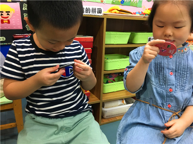 活动中,孩子们认真观看了《保护牙齿》的视频后,连忙拿出自带的小镜子观察自己的牙齿,还互相观察同伴的牙齿,就怕在嘴巴里发现蛀牙。