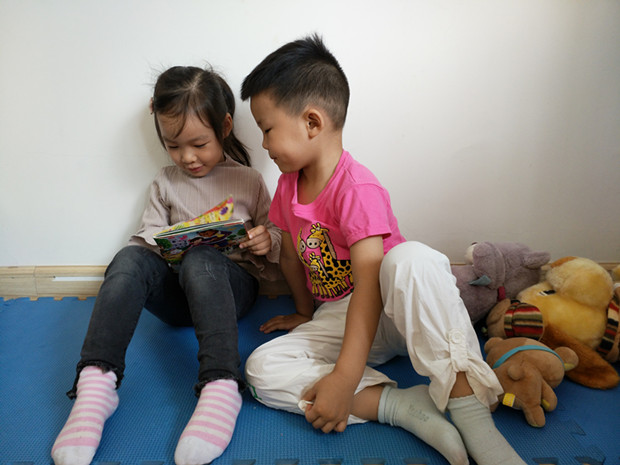 小班的时候,我们老师会跟孩子共同欣赏一本绘本,孩子们在老师的提示下寻找着绘本里隐藏的小秘密。到了中班后孩子们变得自主和独立了,经常会在游戏时,午饭后跟几个小伙伴一起去选一本书,进行阅读,他们你一言我一语地讲述自己对画面的理解,不时地发出一阵阵哈哈大笑。