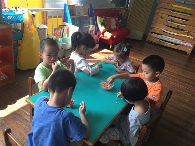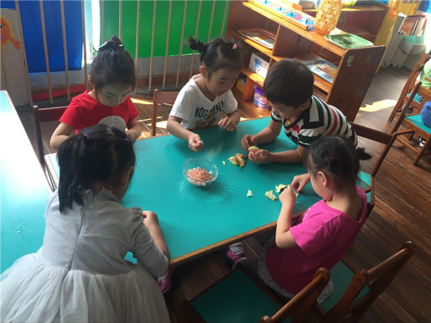 首先,老师让小组长把石榴分配给小朋友们,让他们把石榴籽儿剥出来放在一个碗里.其次,一粒一粒的品尝石榴,吃完后把石榴籽儿摆放在自己的地方.最后,在石榴吃完后,数一数今天一共吃了多少个石榴籽,记住这个数字。