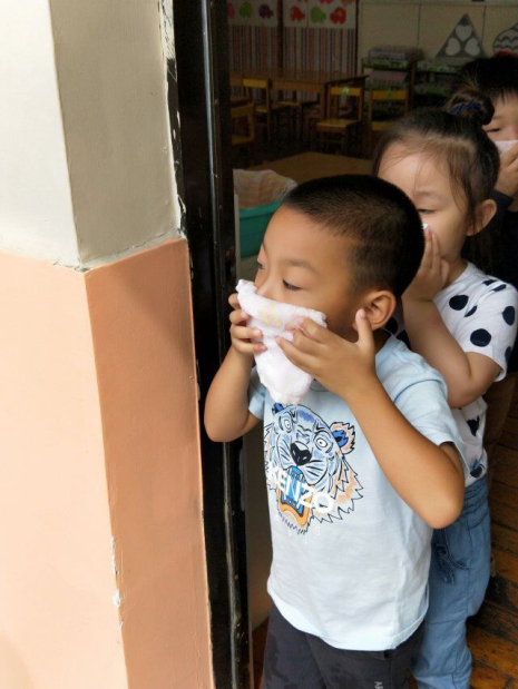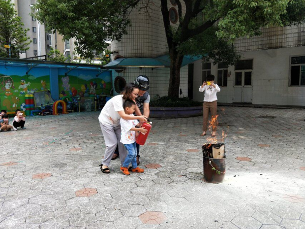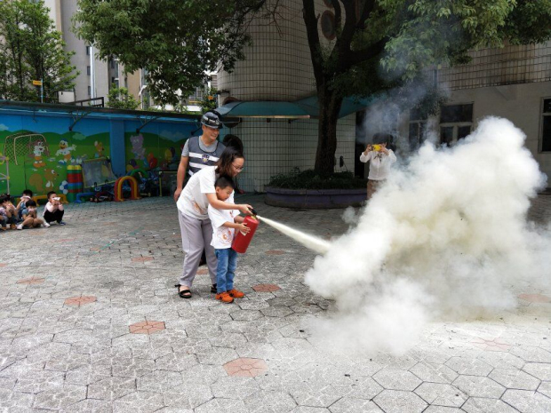 上午10点30分,孩子们正在专心地上课,突然,伴随着一声声尖锐而急促的警报声,我园的消防疏散演练活动正式拉开了帷幕。各班教师迅速按紧急预案的疏散线路带领幼儿拿起湿毛巾,捂住口鼻,弯着身子,从楼梯上井然有序地下楼。很快孩子们集中到操场的安全地带,教师迅速地清点人数,并向后勤主管孙老师报告。顾师傅为孩子们演示了如何用灭火器灭火的过程,期间大班的老师和中大班的孩子分别学习了灭火器的使用方法。