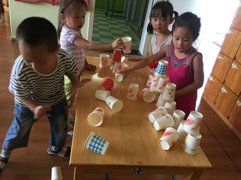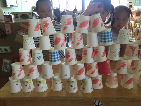 为了增强幼儿的纸杯叠高技能,培养幼儿的竞争意识和小组合作能力,9月27日上午,我班幼儿举行了纸杯叠高比赛。瞧,幼儿在紧张的音乐声中参加了此次比赛,他们把纸杯叠成了一个三角形,比比谁叠得又快又好;他们三人、四人一组把纸杯围合成了一个正方体,比比哪组叠得又快又牢固;他们自由地组合小组,自主地用纸杯搭建物体,看,他们一次次的探索、一次次的失败,感受活动带来的快乐!