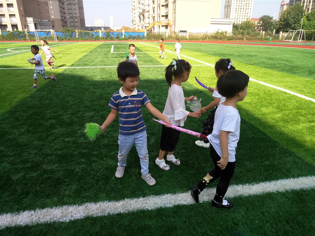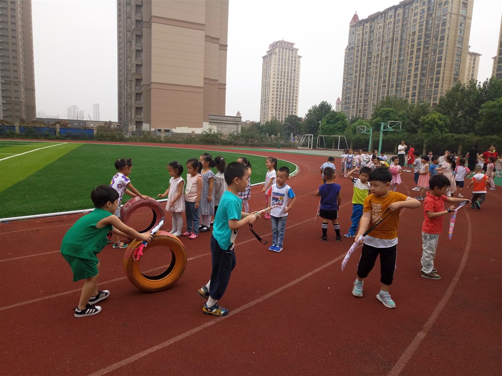 看!快乐的一天在运动中开始了,孩子们时而钻、时而跳、时而跑,玩得不亦乐乎,教师们对活动进行科学合理的组织与调控,使孩子们得到了积极有效的锻炼。这使幼儿园的早晨呈现出健康、活泼、向上的氛围,快乐在操场上飞扬!