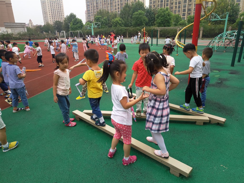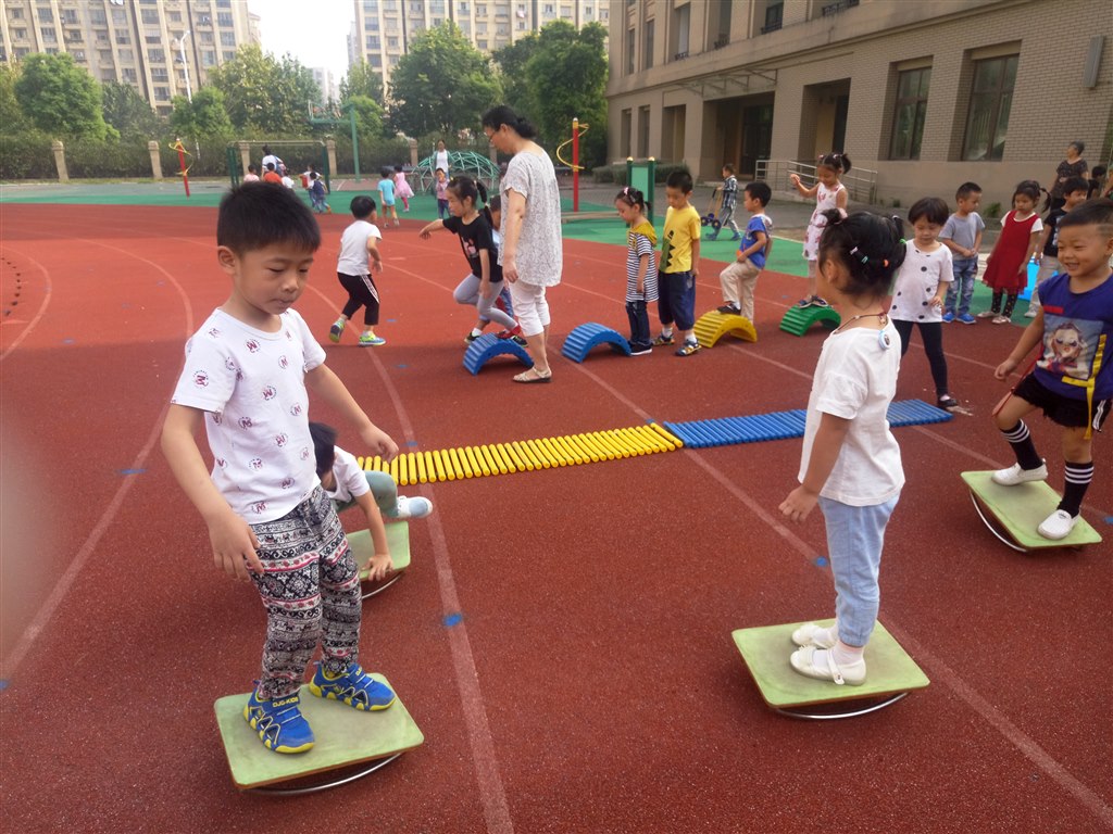 开放式的锻炼,让孩子们不再局限在规定的一方小天地,他们可以玩到更多的器具,真正做晨间锻炼的主人。