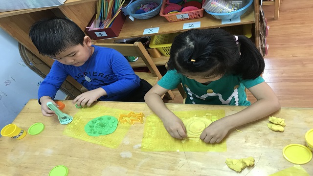 之后,老师让孩子们看看说说中国的国旗是什么样子的?国旗是什么颜色的?上面有几颗星星……在孩子充分的感知中,认识了国旗的外形,从而孩子知道了我们是中国人。接着,孩子们一边听着国歌一边模仿升旗仪式时人们的站立动作,向着国旗行注目礼。最后,老师让孩子们用彩泥在蛋糕胚上装饰生日蛋糕。你看,孩子们为祖国妈妈装饰的蛋糕多么漂亮啊!充分发挥了孩子们的创意,在制作的过程中融入了孩子满满的爱意。