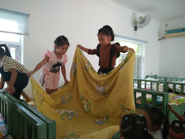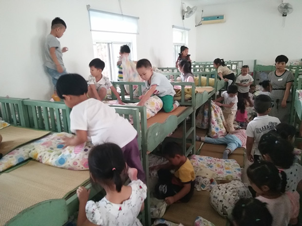 为了更好地培养幼儿的自我服务意识,提高幼儿的生活自理能力,幼儿园的老师们都提倡幼儿自己动手,自己的事情自己做。近日茶山中心幼儿园朵朵三班进行了幼儿叠被子比赛。