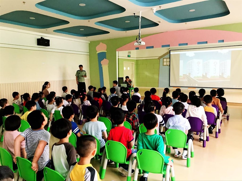 消防员首先为小朋友介绍了消防员一身的装备,给小朋友们讲解了消防车上的装备,让幼儿认识了高压水枪、水带、消防梯等各种器械。参观结束后,消防员叔叔为中大班小朋友组织了一场属于孩子的消防讲座,为孩子们播放了一个与日常生活密切相关的动画,并根据动画内容进一步的给孩子们普及了消防安全知识,以及逃生技能。