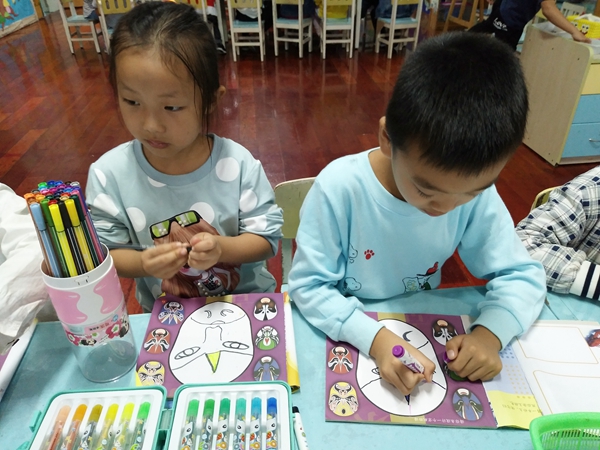 将一颗星难度级别的填色图纸数量减少,在分享交流中提醒幼儿一颗星只是为绘画能力较弱的幼儿准备的,鼓励幼儿大胆尝试更难的绘画技巧。