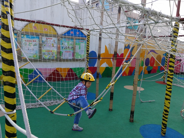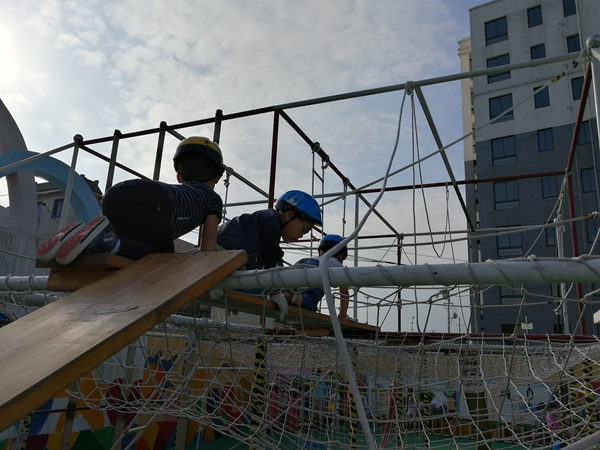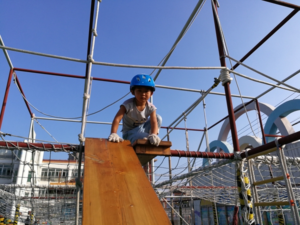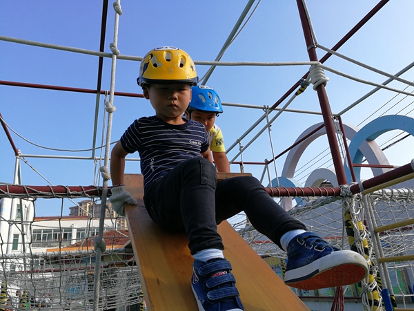 孩子们面对这么高的攀爬架,克服了心里的恐惧,挑战了自己,可真棒!