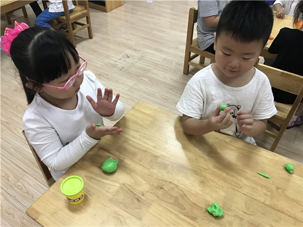 近日,广化幼儿园开展了“童趣月饼乐享中秋”彩泥制作月饼的活动。孩子们了解了中秋节的来历,知道中秋节是我国传统的团圆节。在老师的引导下,小朋友自己动手制作个性月饼。小朋友们首先揉好彩泥,再用手搓、压成形,然后再在上面做成自己喜欢的各种形状或花朵的装饰。在音乐背景下鼓励幼儿大胆制作自己设计的月饼,在制作中感受中秋节的欢乐气氛,要求幼儿在做完后要把手洗干净。最后等每个小朋友完成后,邀请他们对自己捏的月饼进行讲解,说明为什么要捏成这个造型,有什么用意。班级里有几位小朋友捏出了笑脸、哭脸“月饼”,真是创意无限啊。