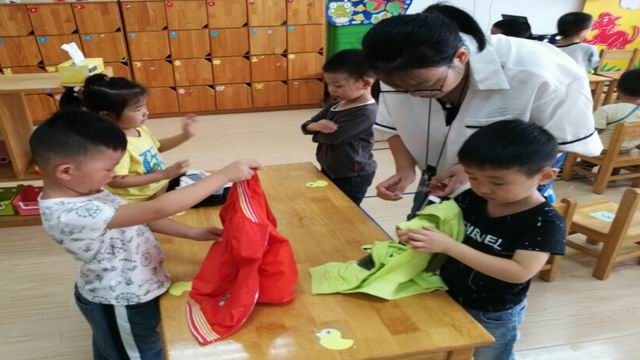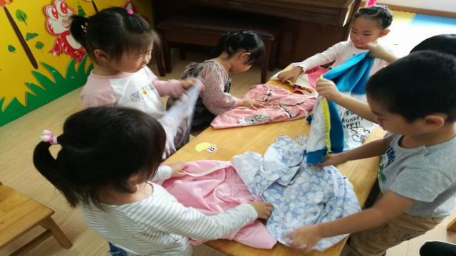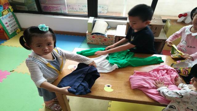 天气已渐渐转凉,小朋友穿的衣服明显多了起来,为了让孩子养成自觉整理物品的好习惯,新城逸境幼儿园小班年级组开展了“小手真能干—我会叠衣服”活动。