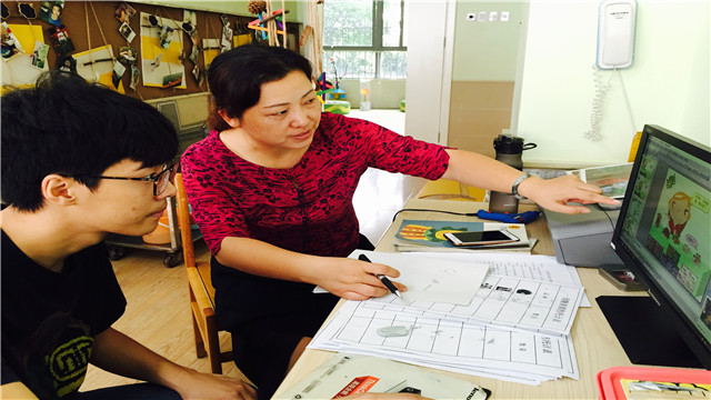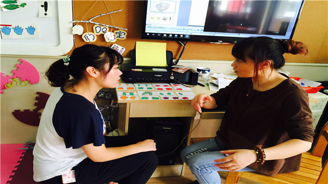 这五位学生是即将要参加江苏省幼儿师范生基本功大赛的学员,我园五位不同特长的骨干教师对她们进行了一对一的教学指导。在第一遍教学结束后,指导教师不仅口头上帮助她们梳理教案、调整流程,还亲自动手,绘画图谱、制作教具,进行现场演示,五位学员认真倾听,提问题,谈困惑,和带教老师进行对话,为第二次的教学用心准备。