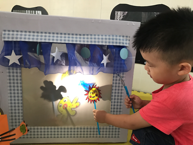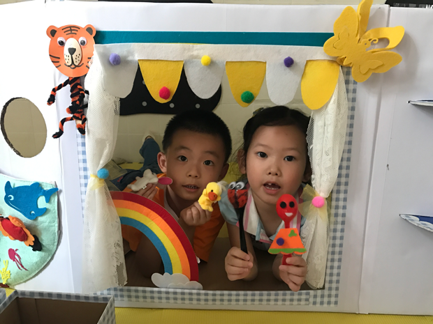 “手儿一转,魔方打开啦!”在小朋友的欢呼中,舞台魔方展开了,为孩子们带来了四个各具特色的小舞台。围裙剧场里,小朋友们在围裙口袋中变出各种各样的故事人物造型,小嘴巴里讲出千奇百怪的小故事。皮影戏台内,在光与影的交汇下,一段段有趣的冒险从手中开始。百变舞台中,抽象的空间舞台站位有了舞蹈小人的帮助,变得更加直观。木偶剧场外,总是围满了许许多多小观众,指偶、瓶偶、信封偶一系列的偶类玩具总是能吸引很多小朋友。