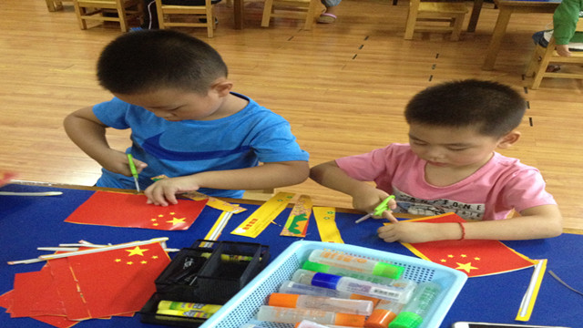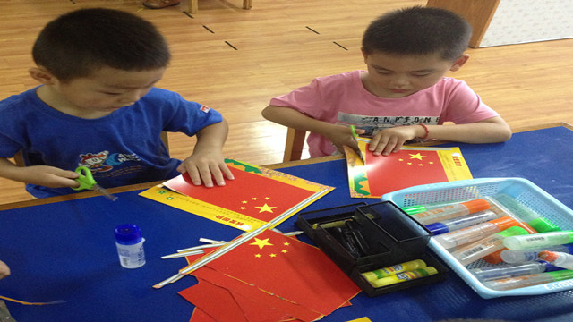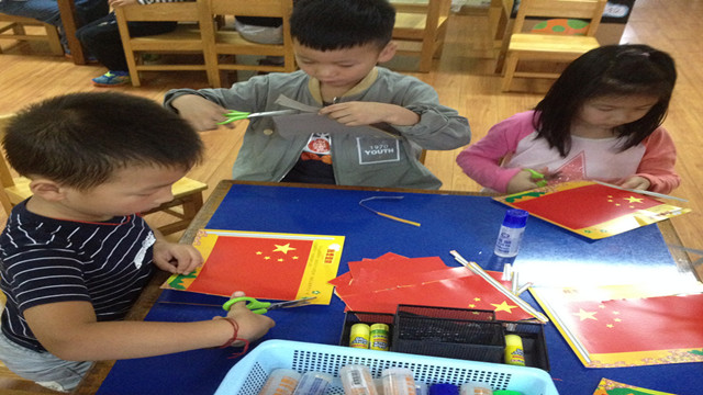彩虹幼:动手做国旗 喜迎国庆节