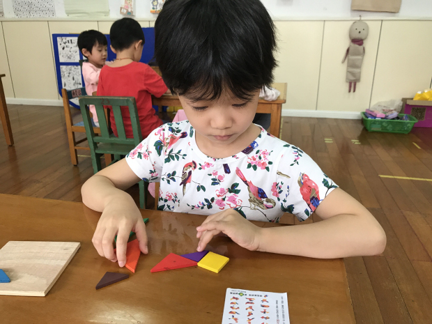 通过把玩七巧板活动,孩子们手眼协调能力、动手操作能力以及空间想象能力都得到了提升。孩子们在感受七巧板魅力的同时也进一步激发了创造力,在他们的成长道路上留下了美丽的足迹。