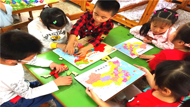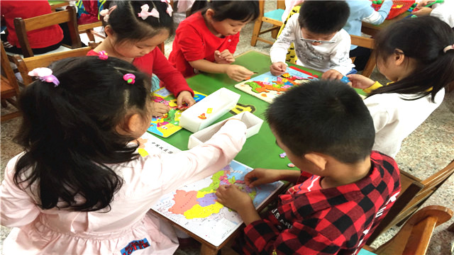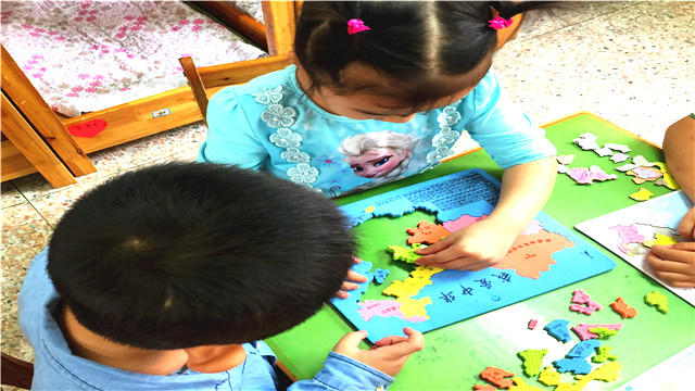 大班的孩子很喜欢拼图,对各种拼图有着浓厚的兴趣,在拼图中孩子们创造性思维和想象力得到很大的发展。近日,常州市清凉新村幼儿园大一班的孩子们为了迎接祖国妈妈生日的到来,开展了“一起拼中国”的拼地图活动。