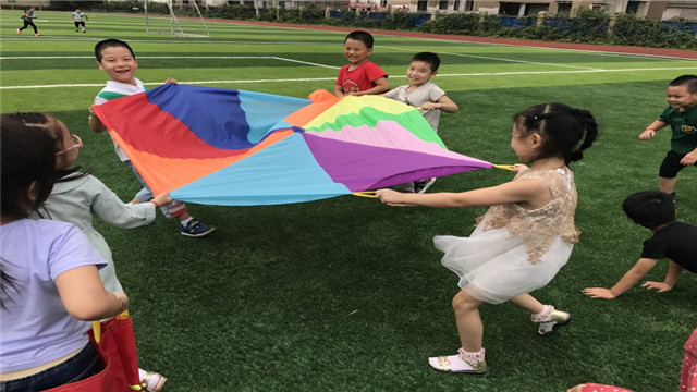 为促进幼儿身体正常发育和机能的协调发展,增强体质,培养幼儿良好的卫生习惯和参加体育活动的兴趣,根据《幼儿园工作规程》中“幼儿每天户外活动时间不得少于2小时”的规定,我们更注重幼儿户外体育活动的开展。我们根据自己班级幼儿的年龄特点,有的踢足球、有的过独木桥,彩虹伞等等,各种游戏让孩子们笑声不断。