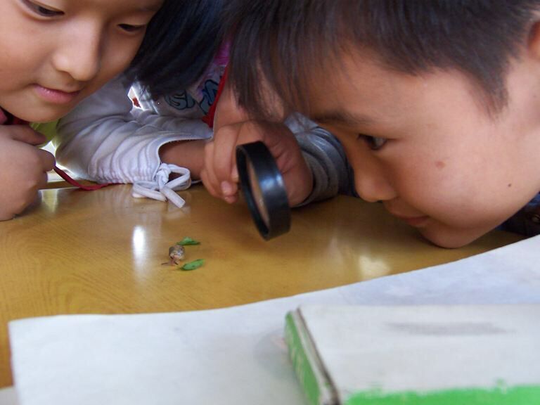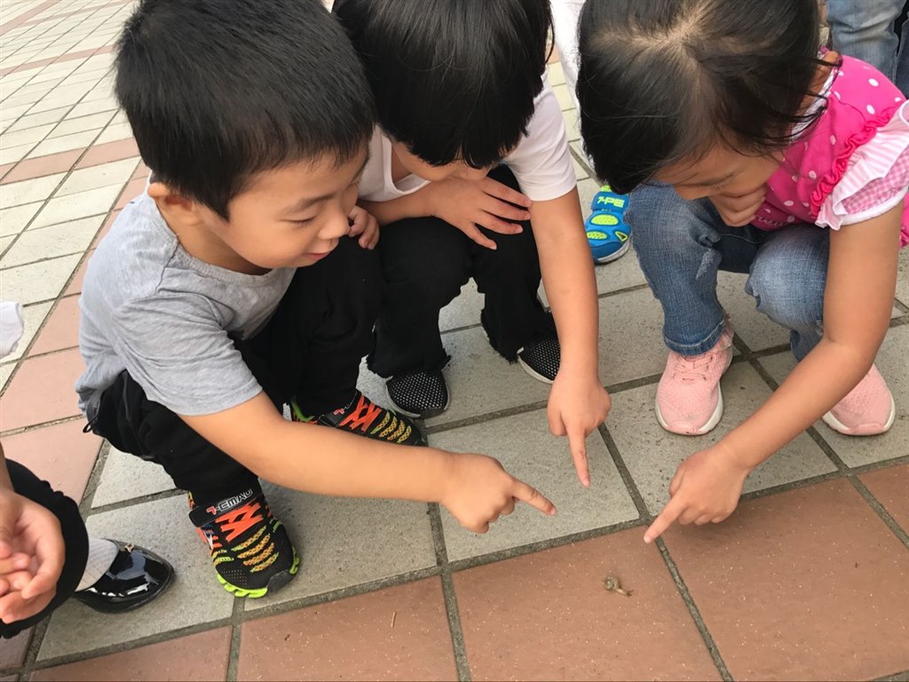 每天孩子们都会来看可爱的蜗牛,通过观察,幼儿发现小蜗牛们走路可有趣,它们背着那“房子”,非常缓慢地向前爬去。发现房子上有螺旋花纹,它的触角能伸缩,它们爱吃菜叶和嫩草,而且它只有一只脚,就像鞋底一样,它走路会留下一条粘粘的线,大家为这惊人的发现而欢呼。幼儿通过共同探索活动,增长了知识、开阔了眼界。我们相信和孩子在一起时教育就发生了,大自然是我们最好的教科书,孩子在观察、探索的过程中自主发现,自主学习,不断成长。