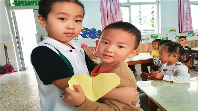 快看是谁来了?原来啊,是大班的哥哥姐姐们,他们排着整齐的队伍,手里拿着亲手制作的礼物来到我们班。在教室门口,哥哥姐姐们对着弟弟妹妹们齐声说道:“弟弟妹妹们,我们来给你们送快乐了!幼儿园里有很多好玩的东西,还可以学到很多本领,要每天开开心心地来上幼儿园!” 他们一边给弟弟妹妹送上自己用心准备的礼物,一边询问弟弟妹妹的名字,还给了个大大的拥抱。孩子们收到哥哥姐姐的祝福和礼物后,既好奇又兴奋,他们感受到幼儿园生活的欢乐,也感受到哥哥姐姐对自己的关爱与帮助。