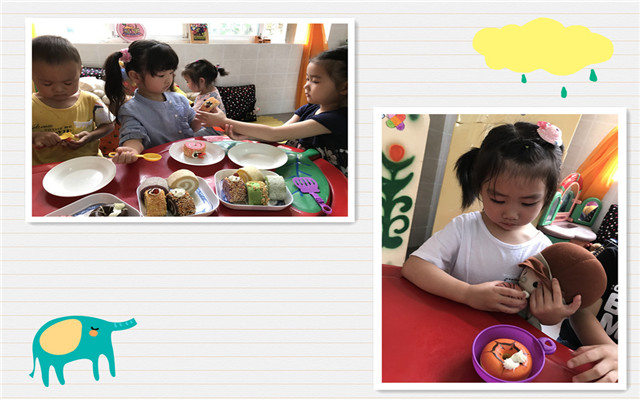 这天一大早,孩子们一进教室,就直奔娃娃家走去。“走,我们一起去娃娃家做饭吧!娃娃一定很饿了,还没吃早饭的”余月和几个孩子径直来到了娃娃家,只见她们有的人忙着切菜,有的忙着上点心,有的还在一边炒着菜,还有的在一边打着电话“爸爸妈妈,你们早点来接我!”………大家都在小家里快乐地忙碌着,做好了饭,孩子们就在一起开心的吃了起来,余月还学着妈妈的样子一手轻轻的抱着娃娃,一手小心翼翼地喂着娃娃,嘴里还在说着:“娃娃,我喂你吃东西。”旁边的金金看见佳佳用勺子不会挖点心,把自己的点心送给佳佳吃………小朋友们在学着爸爸妈妈的样子,照顾着娃娃们,玩的不亦乐乎!