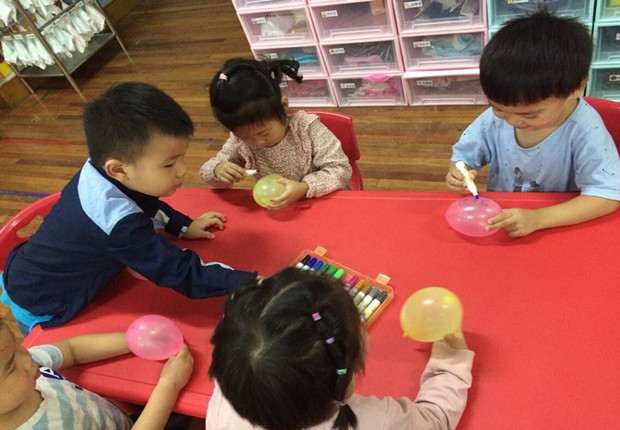 “五星红旗迎风飘扬......”活动在优美的音乐声中拉开序幕。老师通过图片欣赏形式带领孩子们了解祖国的标志性事物——天安门、万里长城、五星红旗等。增进了孩子们对祖国的认识,激发了孩子们对祖国妈妈的喜爱之情。接着,孩子们在老师的带领下用彩笔装饰美丽的气球。一只只个性鲜明的气球在孩子们的巧手下诞生,表达着孩子们浓浓的爱国热情。