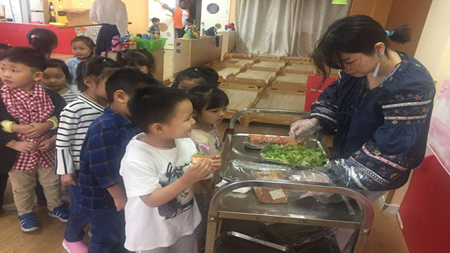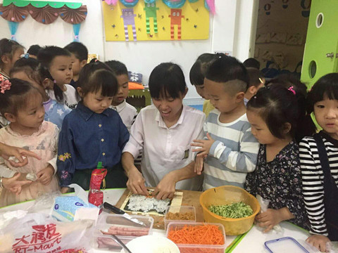 厨艺精湛的宝妈们纷纷来到幼儿园摆起“小吃摊”,为孩子们烹制各种美味小吃:五彩寿司、四喜元宝、银丝橘子、糯米饼……华润幼的宝贝们有口福啦!