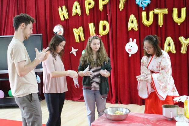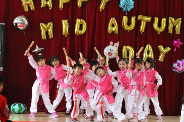 我们的活动丰富多彩。家长朋友们的热情加入让孩子们在《看一看,做一做》的环节里亲自体验了如何做月饼。孩子们个个跃跃欲试,动作有模有样。精彩的活动在一首《爷爷为我打月饼》的传统歌曲中拉开了帷幕。歌舞表演《敦诗说礼》让我们的外国友人感受了一次中国古诗的无穷魅力。每班经典古诗串烧表演《十五夜望月》、《古朗夜行》和《静夜思》更是赢得大家的热烈掌声。好学的国外友人也体验了学习中文的乐趣。一曲中国风《兰亭序》背景音乐下的古风走秀T台表演将整个活动推上了活动的高潮。孩子们自由结合,走着模特步亮相,他们展示了自己,收获了自信更懂得了与人合作的重要性。活动在美味的自助餐中渐渐进入尾声。