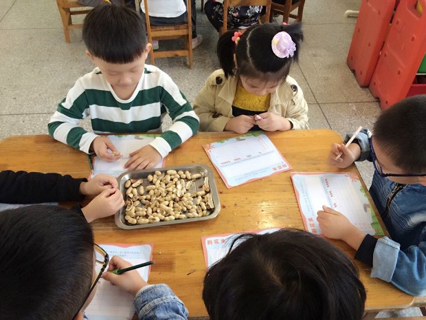 活动以“丰收的季节”为载体,以情感为主线。首先,各班通过PPT、散文诗欣赏《秋天真美丽》、音乐《拾豆豆》、艺术《种子粘贴画》等和孩子们一起讨论了秋天有哪些颜色?有哪些果实?有哪些种子等,引发孩子关注周围事物在秋季的变化,帮助孩子们丰富生活经验。其次各班老师利用地区资源和孩子们用水果、树叶、花生、玉米、红薯等一起动手制作了各种精美的图案有:橘皮“海底世界”、疏果“化妆舞会”、树叶“秋天的信”等,激发了孩子们想象创作的愿望和兴趣,提高了孩子们动手操作的能力。各班老师引导孩子寻找秋天的颜色、果实、故事,并将孩子们积极创作的作品张贴于主题墙中,引发孩子区域活动时指一指、摸一摸、说一说,在孩子们心中留住秋天的足迹。