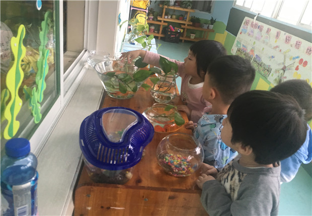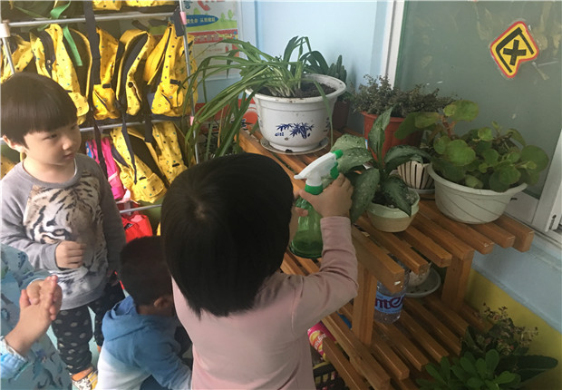 种植园地也是自然环境中的一例,因此娑幼每个班级门口都拥有一片属于自己的 “种植小天地 ”,小班的幼儿比较小,自己种植还存在困难,可是她们可以给花浇浇水,给动物喂食呀。幼儿通过自主的操作,发现、探索植物生长过程中的秘密,并完成养护记录,观察记录。而教师、家长,始终是宝贝身后的引导者、支持者、合作者。