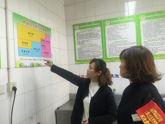 食堂管理不仅要确保全园师生的食品安全卫生,还要为全园师生提供优质服务,担负着保障教育教学的重任。2017年10月16日中午,茶山中心幼儿园安全小组成员对食堂食品安全进行了认真细致的检查,特别针对食堂“五常”管理的运用。