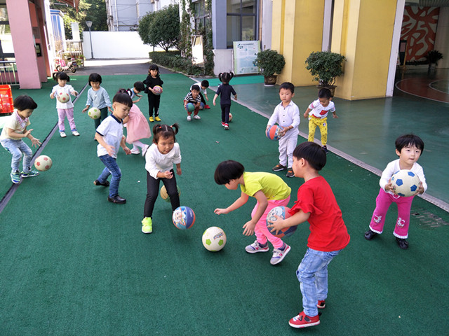 拍球是孩子喜欢的一项运动,它不仅能促进孩子手眼动作的协调,增强体质,而且能培养孩子的耐力、坚持性等良好的品质。在日常训练中,教师从拍球的姿势、动作、频率等基本动作着手,对孩子们耐心细致地进行指导,孩子们在拍球的过程中露出了开心、自信的笑容!