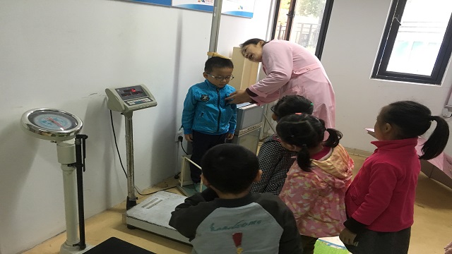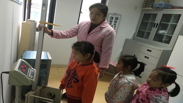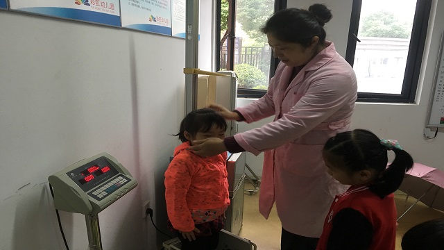 为定期了解了幼儿的生长发育状况,掌握幼儿园群体幼儿的生长发育水平,近日,彩虹幼儿园保健老师在班级教师的配合下,为孩子们进行了身高、体重的测查。