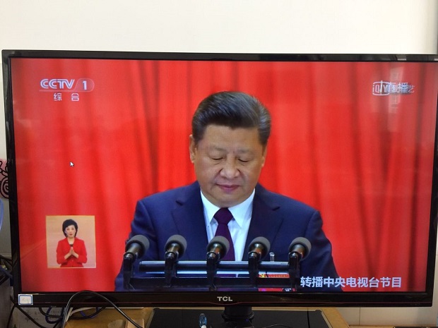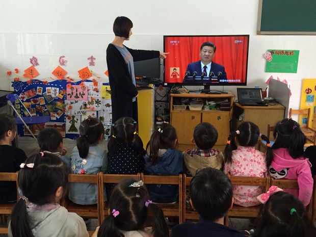 “我们都是中国人,个个都是好娃娃,从小爱党爱祖国,一起迎接十九大”,