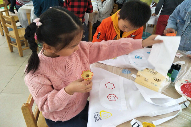 为了培养幼儿对托印画的兴趣和对艺术欣赏,茶山中心幼儿园艺术组结合孩子的兴趣和经验在本学期开展有关拓印的主题活动。在2017年10月18日上午大班的杜老师就打响了第一炮,精心组织了《漂亮的围裙》活动。