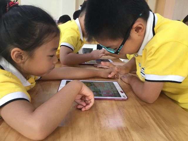 互联网+时代,新媒体给了我们更多新教学手段的启示,本次ipad走进幼儿数学课堂的尝试也变得尤为可贵。结合生活实际,王老师给孩子们带来了一节《超市中的数字》的活动,通过ipad的有效连接,实时拍下超市中的图片,幼儿通过小手指圈圈划划发现超市中有趣的数字。结合传统的数字间的有趣关系,再进行数物配对。借助ipad内的新型APP幼儿之间还能两两互助进行顾客和店主的购物游戏,最后与真实的超市实时视频连线,一起体验帮助超市营业员进行物品结账,感受助人的快乐。新媒体ipad的进入,让孩子们的积极性空前高涨,游戏课堂也更的更加趣味盎然。