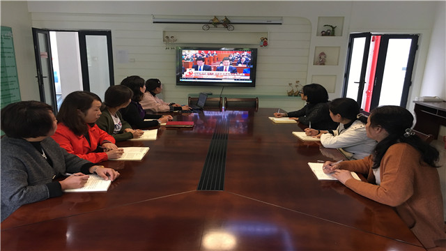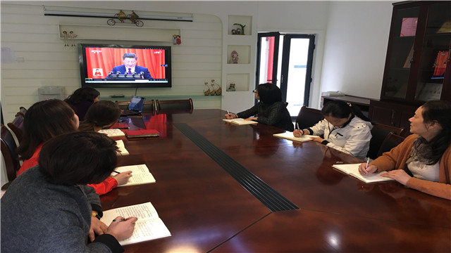 中国共产党第十九次全国代表大会于9月18日上午9时在北京人民大会堂开幕。由于工作原因未能及时观看现场直播,于是9月19日中午我园党支部组织全体党员聚在会议室回看十九大开幕式的实况直播,虽是回看,但是大家仍然聚精会神、边听边记,仿佛置身于大会现场,掌声伴随五年来取得的伟大成就和未来五年发展的希望,一次次响起……激动与自豪之情溢于言表,大家表现出了对党的无限热爱和对党的十九大的热切期待。