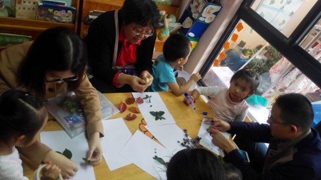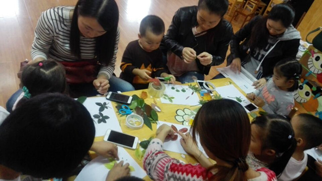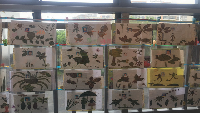 此次亲子活动有的是父子合作,有的是母女合作,还有的是爷爷和奶奶参加,真的是全家总动员,欢乐乐开怀!在活动中,孩子和家长们充分发挥想象,金黄淡绿、形状各异的落叶经过孩子们的想象和创造,变成了一幅幅精美的树叶画。有“蝴蝶花儿开”、“幸福的一家”、“可爱的小老鼠”、“美丽的孔雀”、“舞动的音符”、“一帆风顺”等等,每一幅作品都栩栩如生。树叶拼贴画的材料来自于大自然,培养孩子感知自然、观察生活、增强动手能力,帮助孩子从小树立绿色环保意识,增进对大自然的热爱。此次家庭亲子活动富有创意,充满温情,不仅让幼儿感受到成功的喜悦,锻炼了幼儿的动手操作能力,更进一步培养了幼儿的想象能力。