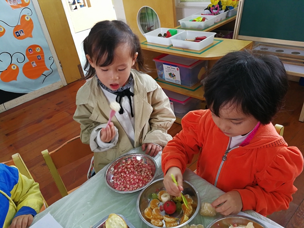本活动我们没有真正意义上的结束,而是让孩子们持续不断地对水果产生兴趣。进而投入到非正规的自主活动中去。