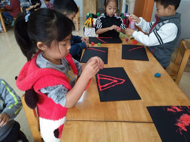 在活动开始前,老师先介绍了活动的材料和主要用法,并把超轻粘土的一些特性做了详细讲解,引发孩子们在拉、捏的过程里,感受彩泥多变、可塑的特点;紧接着孩子们拿出了十八般武艺,围绕主题,熟练地运用搓、团、粘、按捏等技能,将一块块超轻彩泥组合成了千姿百态的帐篷:有像蒙古包一样的帐篷,也有三角形的帐篷,还有半圆形的帐篷等等,总之款式多样,形态各异。