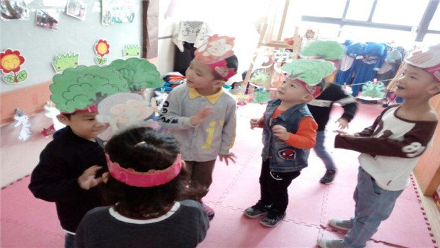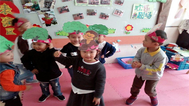 瞧!孩子们大方地走进表演区,选择自己喜欢的头饰和动物服装,在舞台上自娱自乐,有的孩子伸开双臂扮演大树,有的孩子竖起手指扮演小兔跳跳,有的孩子穿上小鸟服装在大树之间飞来飞去,有的孩子穿上小猴子的服装在树丛中跳来跳去……坐在台下的小观众们看得津津有味,拍手叫好,也情不自禁地跟着舞动起来,表演现场欢声笑语,好不热闹。