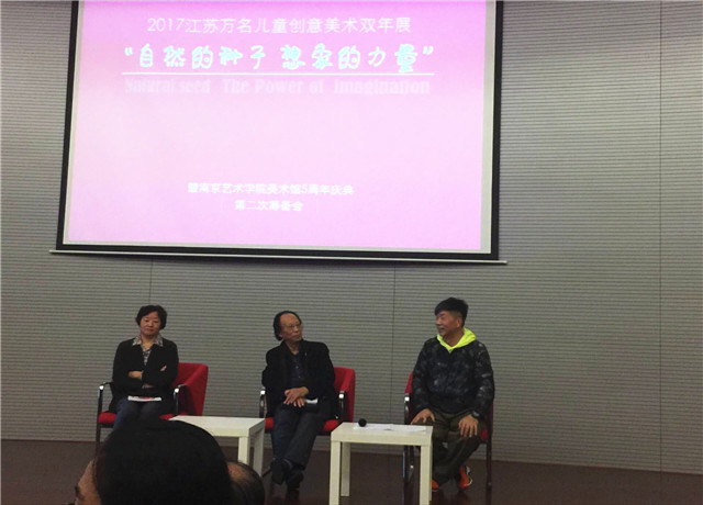 10月20日下午,实验幼儿园钱军、蒋莹两位老师来到南艺美术馆一楼会议厅参加“自然的种子,想象的力量——江苏省万名儿童创意双年展”第二次画展筹备会,会议由早期教育美术编辑部单磊副主编主持,南师大边霞教授、王丽副教授、早期教育姚国麟主编、江苏省美术特级教师牛桂生老师、珠海南色美术活动基地张笑老师、ART儿童艺术培训中心夏涓老师参加了本次筹备会。