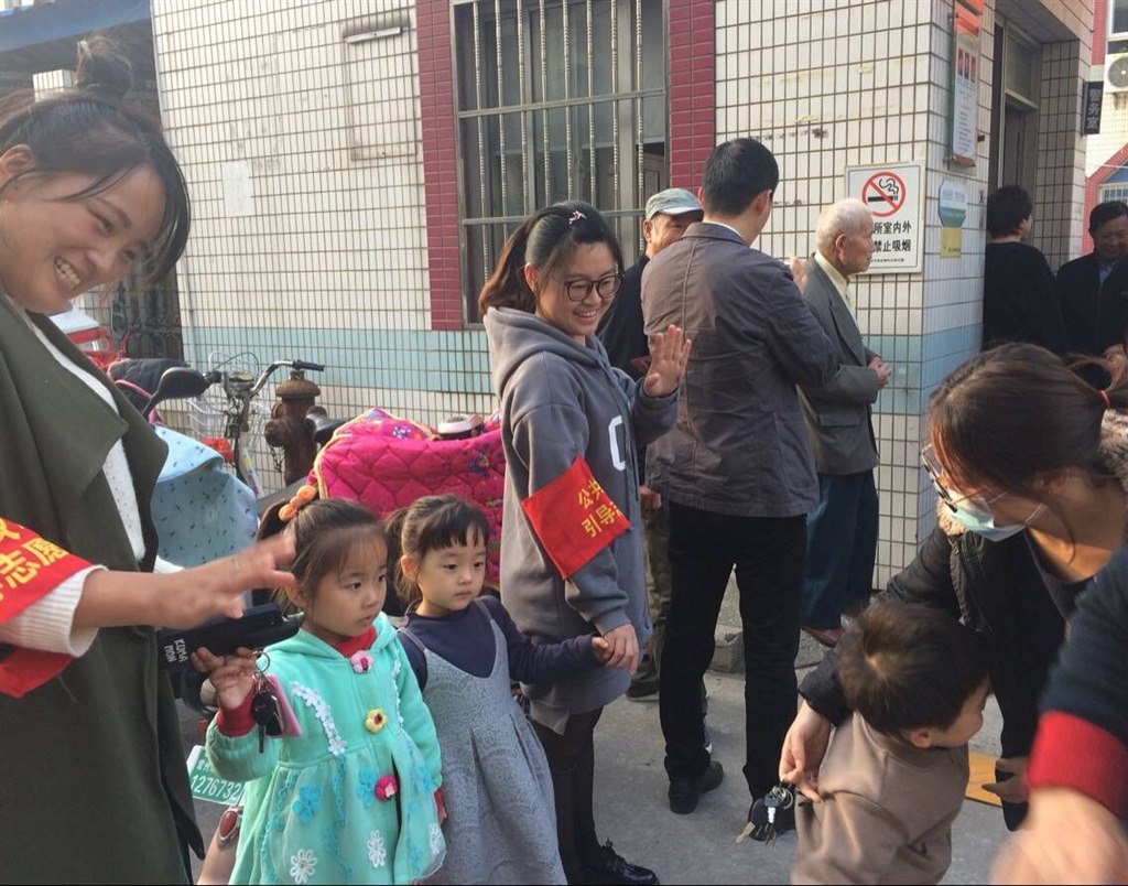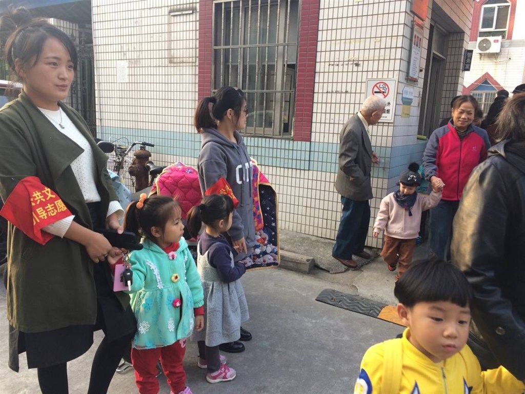 幼儿园门前,家长们佩戴执勤红袖章,每天早晨、傍晚在幼儿园门口,和保安叔叔一起维护安全秩序。除此之外,家长志愿者们还引导孩子们有礼貌地和家长道别。他们有序地组织入园的孩子,有序地疏散幼儿园门口的车辆,直到所有的孩子都安全入园离园。