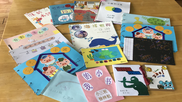此项活动,得到了许多家长的积极响应,家长们利用休息时间,提前构思设计,和孩子们一起用自己的创意、灵感制作成了一本本独特、灵动的亲子创意绘本书。有的小朋友依据自己的想象自编故事画面,并在家长的帮助下附上文字说明;有的则是父母精心的绘画,孩子涂上七彩的颜色;有的是图片剪贴黏贴,附上文字解释;还有的是用花瓣、树叶、碎布、毛线、种子、碎纸、剪纸或者折纸组合成各种图案。绘本内容充分体现了原创的特色,每一本绘本都描述了一个自编的小故事。