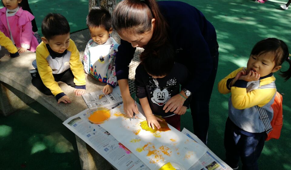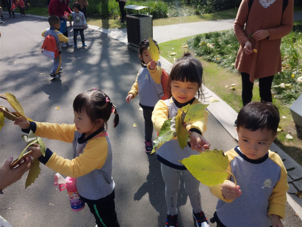 来到红梅公园,大中小三个年级组分头行动。大班的孩子们先是来到了丛林探险,随后老师们组织孩子进行了写生活动,把看到的秋天用画笔留在了孩子的心中。中班的老师们带着孩子穿过了古色古香的走廊,欣赏着古建筑的美。小班的孩子们在老师的带领下一起捡树叶还进行了印画活动,把落叶美丽的纹路给拓印了下来。