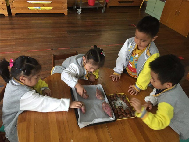 小朋友自己动手参与了烤番薯和大栗,让他们知道自己的劳动成果是很甜美的。很多食物的味道并不像他的表面一样,番薯虽然外表有点坑挖但是味道却好极了。自己动手,能收获更甜美的食物。小朋友不能完全取决于外表,要做一个有内涵的人。